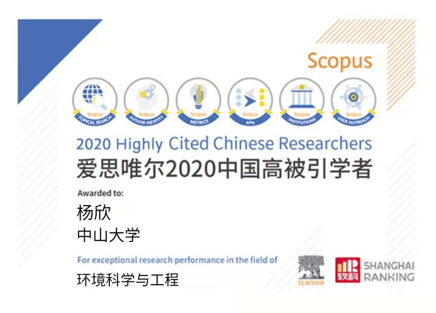 2021年4月,恭喜杨欣老师荣获“爱思唯尔2020中国高被引学者”!